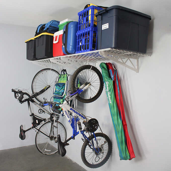 Ceiling racks make use of a lot of dead storage space in the garage. You can put everything up and out of the way. 4 x 8 racks are perfect for boxes, totes, luggage, and camping gear. If well paces you can also hang bikes and ladders off the bottom or side.